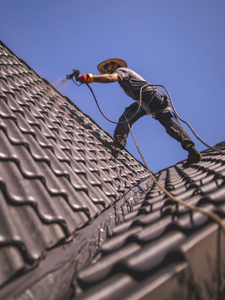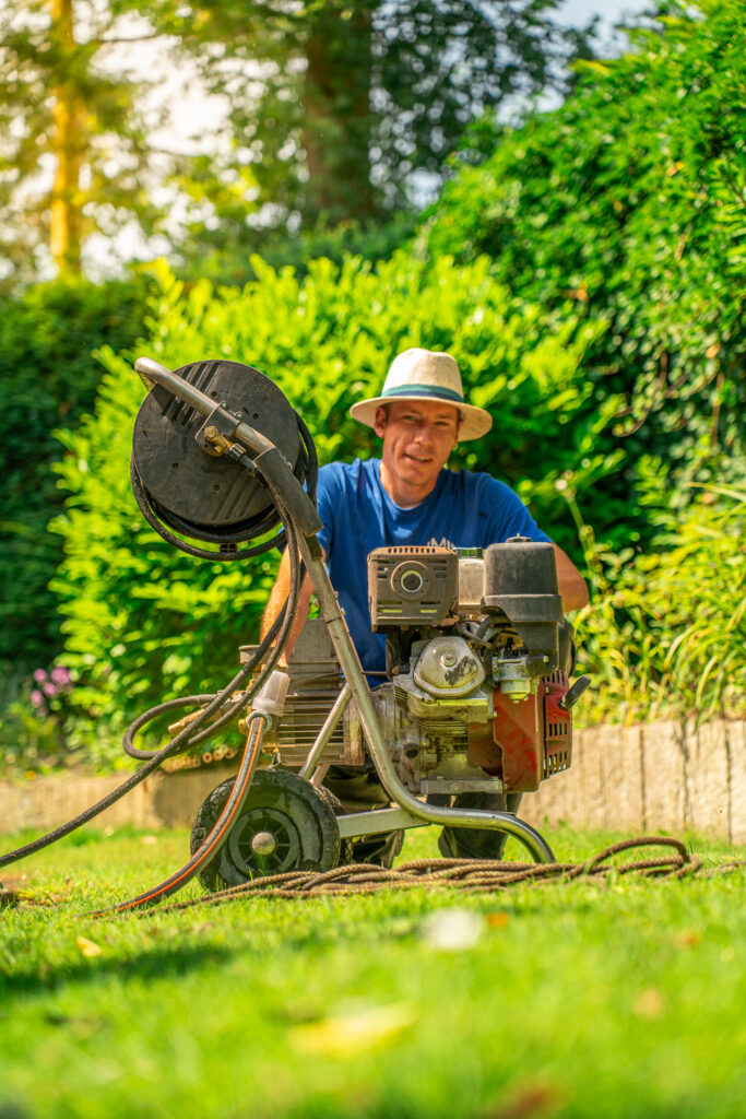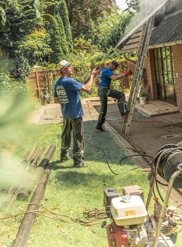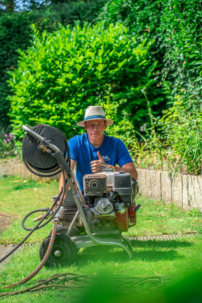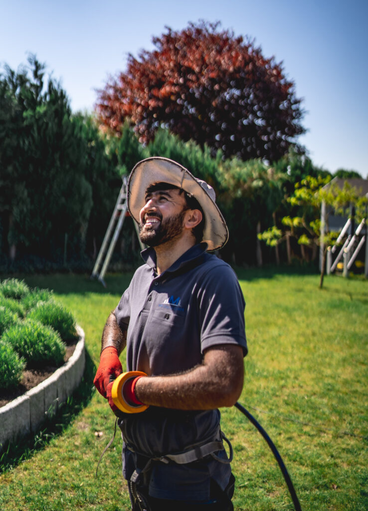 Mann auf Leiter