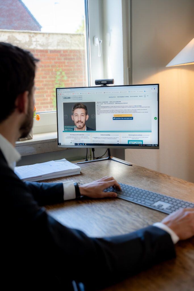 Das Bild zeigt ein Business Portrait. Im Fokus steht ein Rechtsanwalt, der authentisch und selbstbewusst in Szene gesetzt wird – ein Beispiel für hochwertige Businessfotografie die Unternehmen professionell nach außen repräsentiert.
